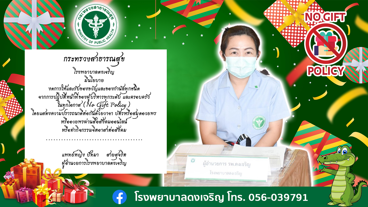 ข่าวสารทั่วไป 24 ธันวาคม 2021 โรงพยาบาลดงเจริญ มีนโยบาย งดการให้และรับของขวัญและของกำนัลทุกชนิด โรงพยาบาลดงเจริญ มีนโยบา...